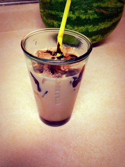 It’s Kahlua and milk with chocolate syrup on top — it is DIVINE, thanks!